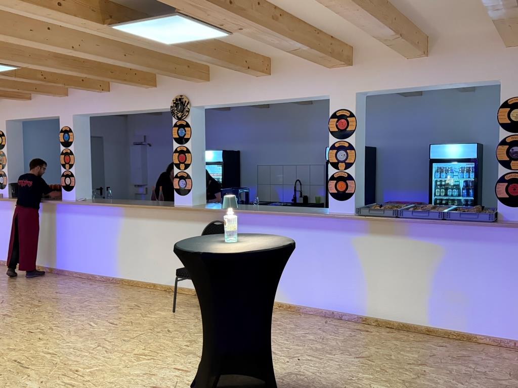 Im Erdgeschoss, wie auch im Obergeschoss, befindet sich ein Thekenbereich, so dass keiner auf dem Trockenen sitzen muss.